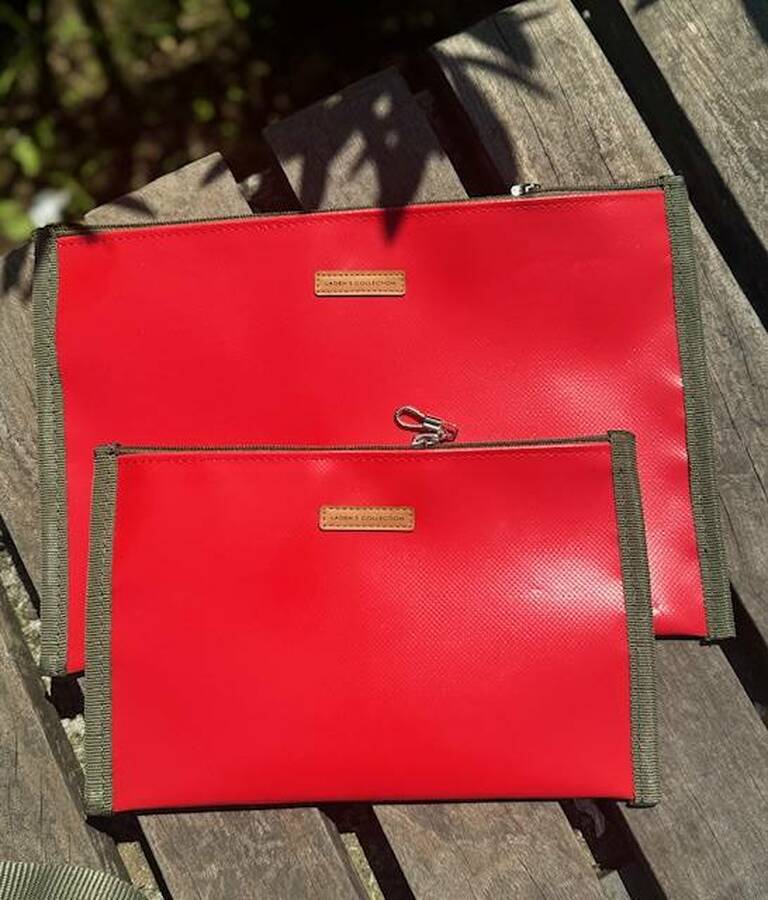 This set includes two waterproof swimsuit bags in different sizes, designed in the elegant red series with stylish green trim. Perfect for keeping swimwear organized and protected, each piece combines practicality with chic design.