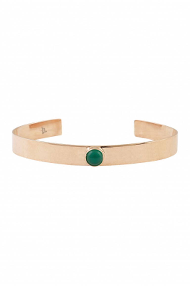 Crafted from sterling silver with rose gold plating, this bangle features a vibrant green agate stone. Each piece is handmade, offering unique craftsmanship and timeless elegance.
