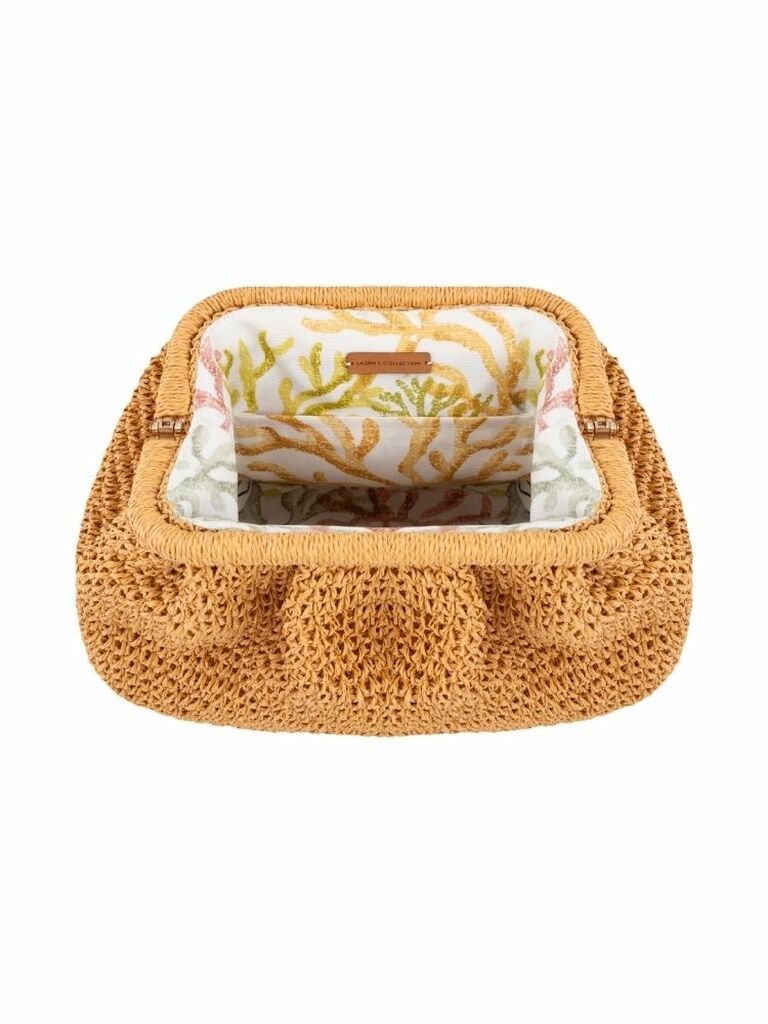 Handmade from durable paper rope in a stylish camel color, this bag features a fully lined interior for added strength and protection. It comes with a dust bag for safe storage, combining artisanal craftsmanship with practicality. Lightweight yet sturdy, it is perfect for everyday use, beach outings, or casual events, offering both natural texture and timeless elegance.