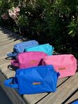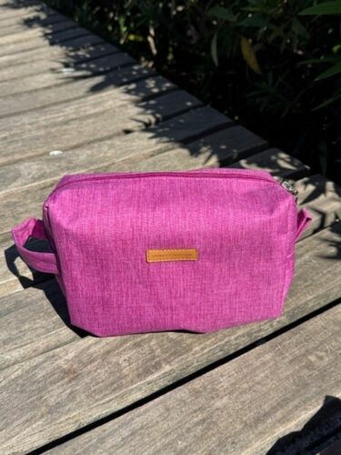 This dark pink makeup bag is handmade from waterproof fabric, providing durability and protection for your cosmetics. Its practical structure makes it ideal for daily use or travel, keeping your essentials safe and dry while adding a stylish touch.