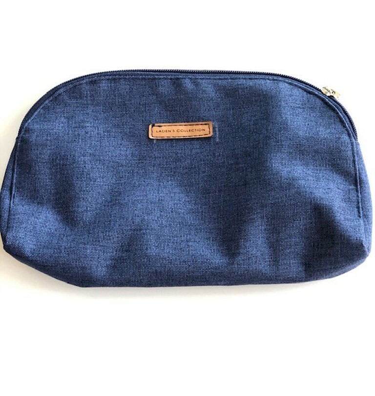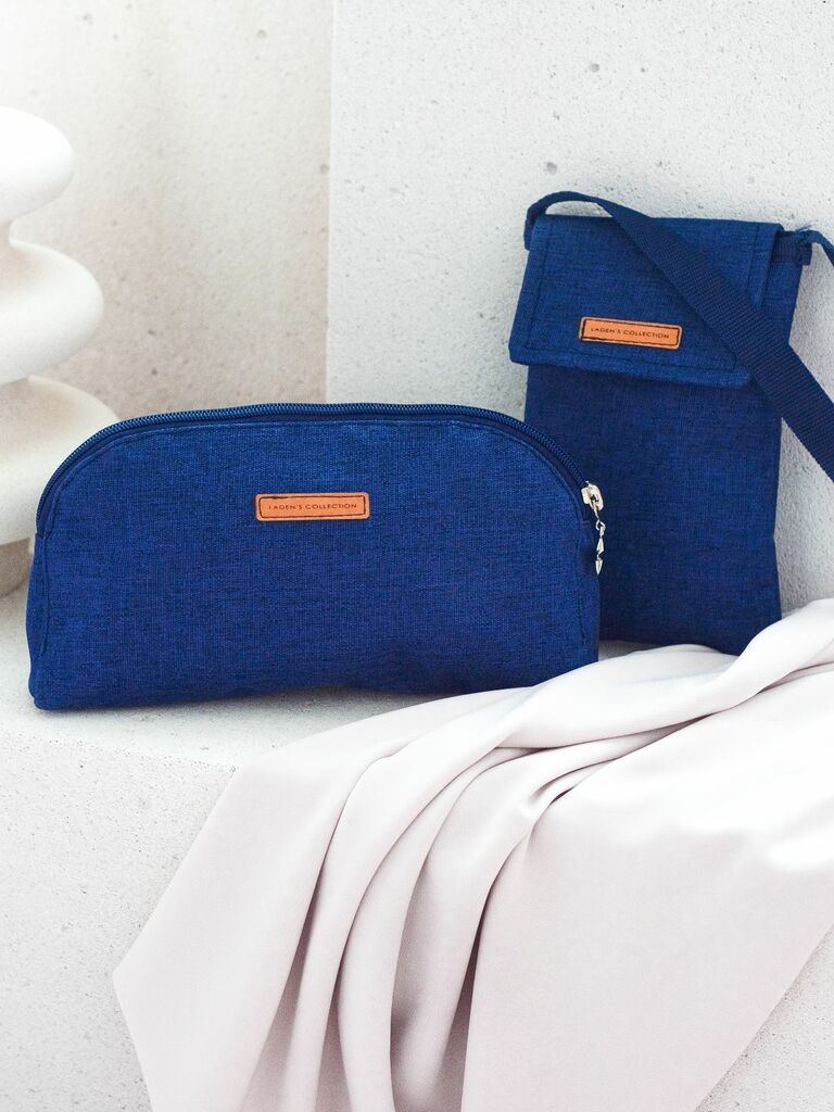 This makeup bag is handmade from durable waterproof fabric and features a fully lined interior for added protection. Measuring 15×23 cm, it offers the ideal size for organizing cosmetics, travel essentials, or daily personal items. Color: Denim.