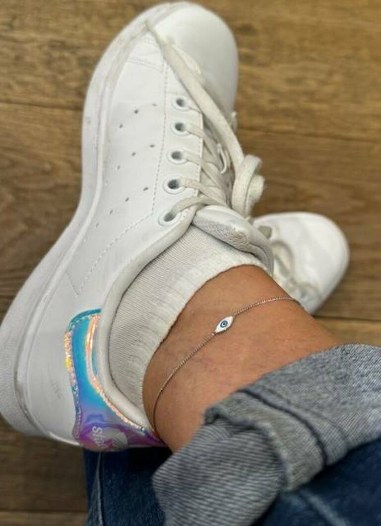 Handmade from 925 sterling silver with rhodium plating, this elegant anklet features a delicate enamel evil eye charm. Every detail is carefully crafted by hand, offering both protection and style. Lightweight and comfortable, it is perfect for daily wear or as a meaningful accessory that blends tradition with modern elegance.