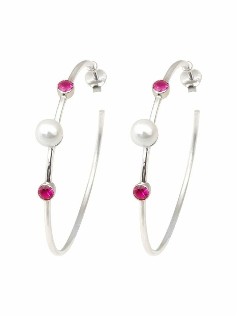 Crafted from 925 sterling silver with rhodium plating, these earrings feature sparkling zircon stones and lustrous Majorca pearls. Each piece is handmade, showcasing unique craftsmanship and timeless elegance.