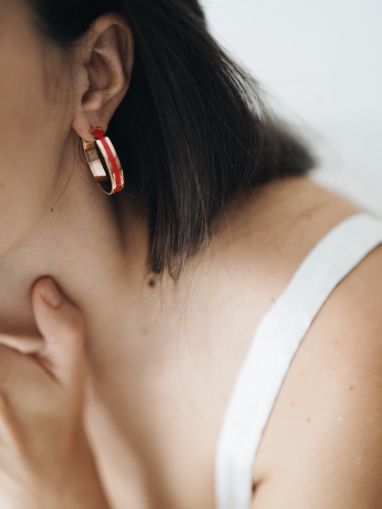 Handmade from 925 sterling silver with rose plating, these hoop earrings are finished with vibrant red enamel. A bold yet timeless design that reflects artisanal craftsmanship and modern elegance.