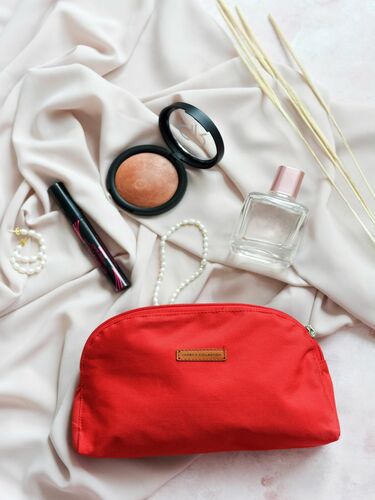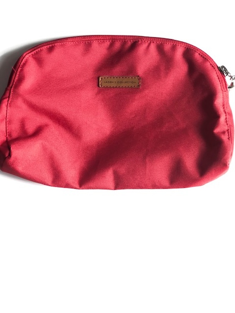 This makeup bag is handmade from durable waterproof fabric and features a fully lined interior for added protection. Measuring 15×23 cm, it offers the ideal size for organizing cosmetics, travel essentials, or daily personal items. Color: Red.